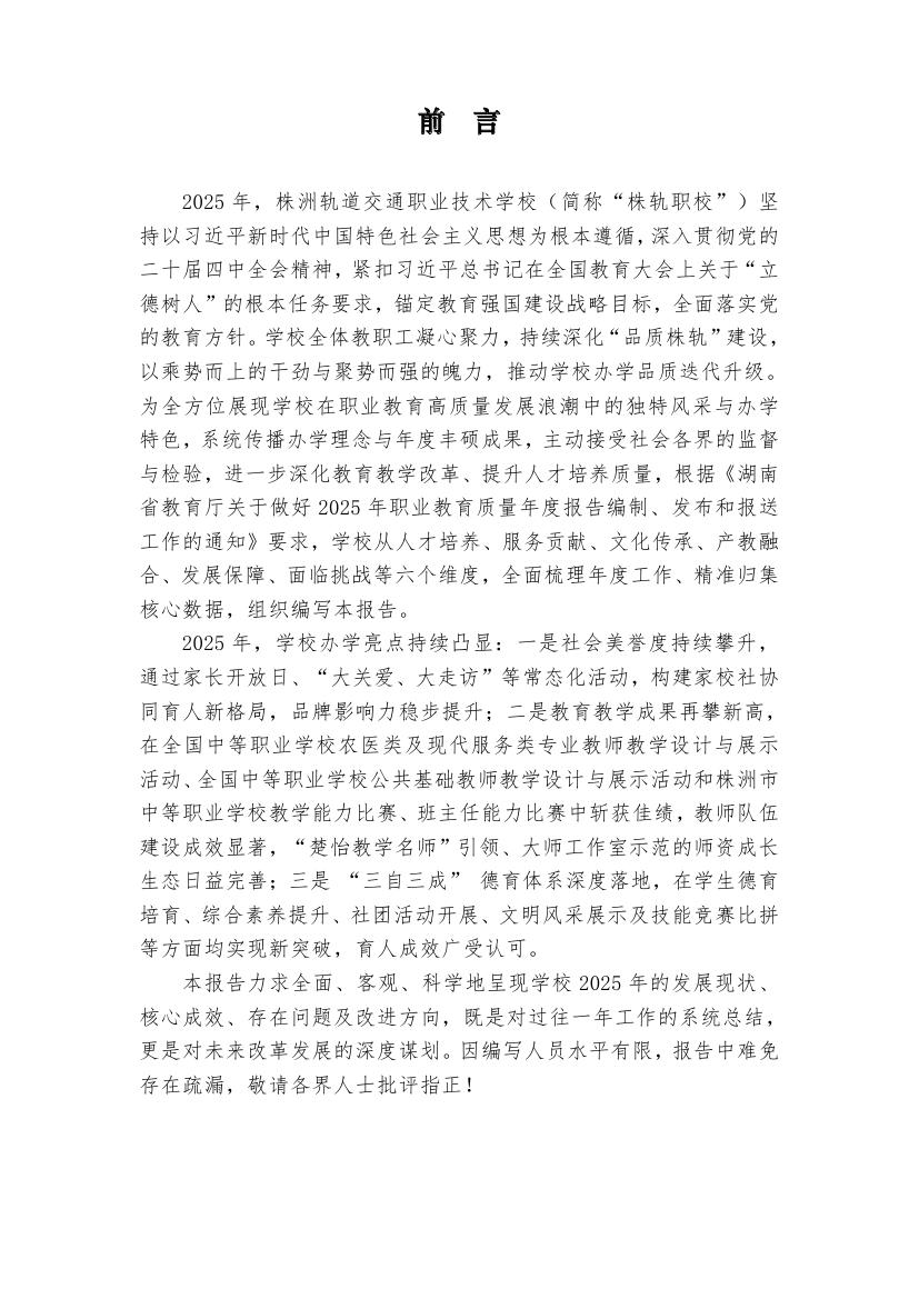 株洲軌道交通職業技術學校2025年度教育質量報告