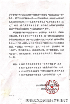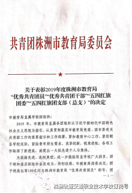 2020年“五·四”青年節(jié)期間,株洲職校(www.ccztjzjg.com)株軌學(xué)子榮獲共青團(tuán)株洲市教育局委員會(huì)五四表彰。